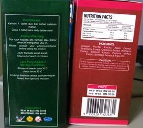 Harga sampel RM50 untuk 60 tablet chewable (dalam seal plastik) termasuk penghantaran ke semenanjung.
